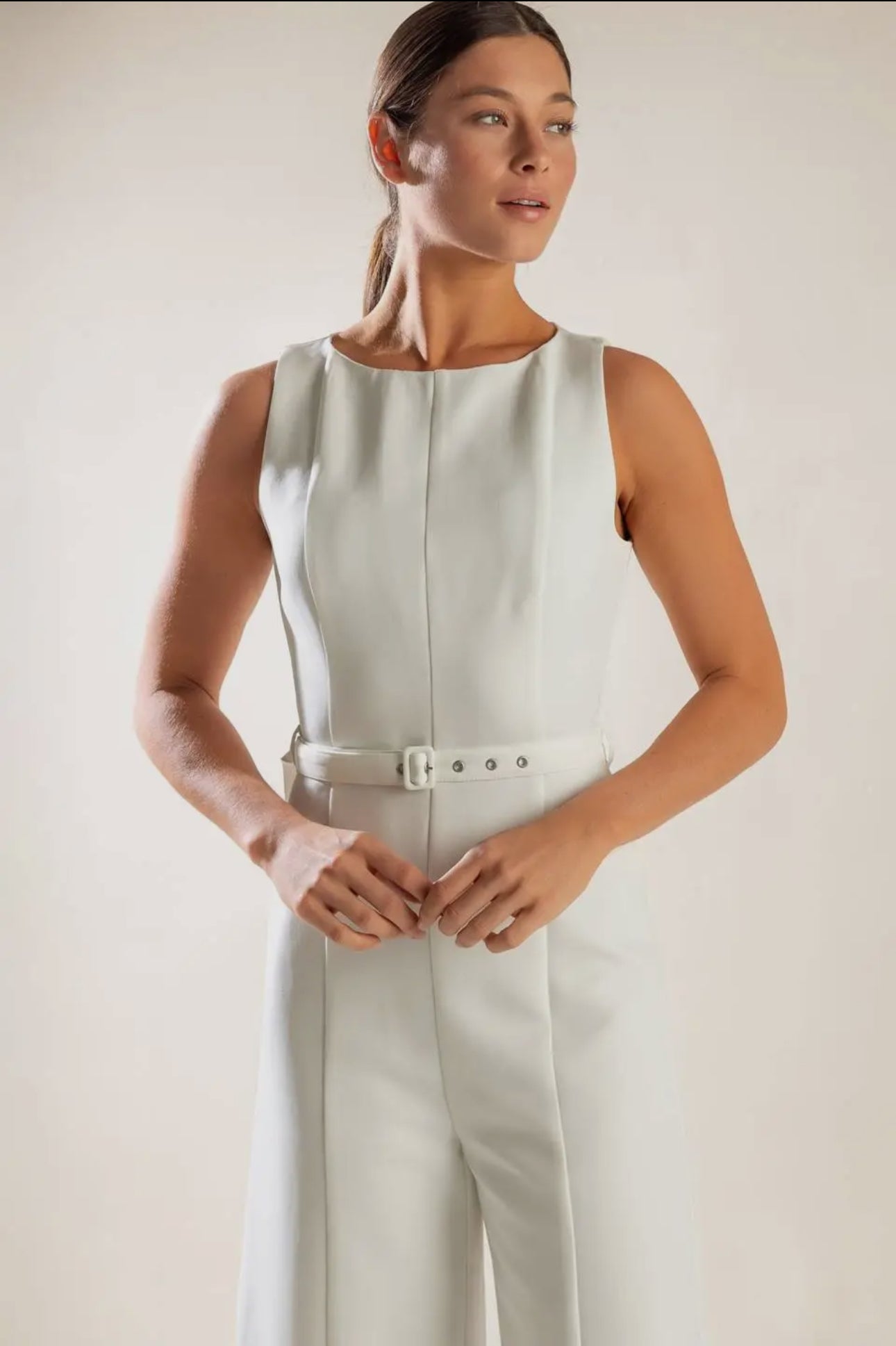 This sleeveless white jumpsuit is the definition of refined minimalism. With a tailored silhouette, wide-leg fit, and belted waist, it sculpts a powerful and polished look. Made from high-quality polyester, it’s the perfect alternative to a white dress—for dinners, events, or any moment that calls for quiet luxury.