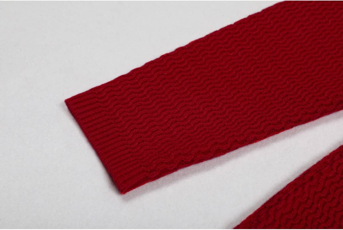 This exquisite dress features a sophisticated knitted design with a flattering V-neckline and a slim fit that accentuates the figure.