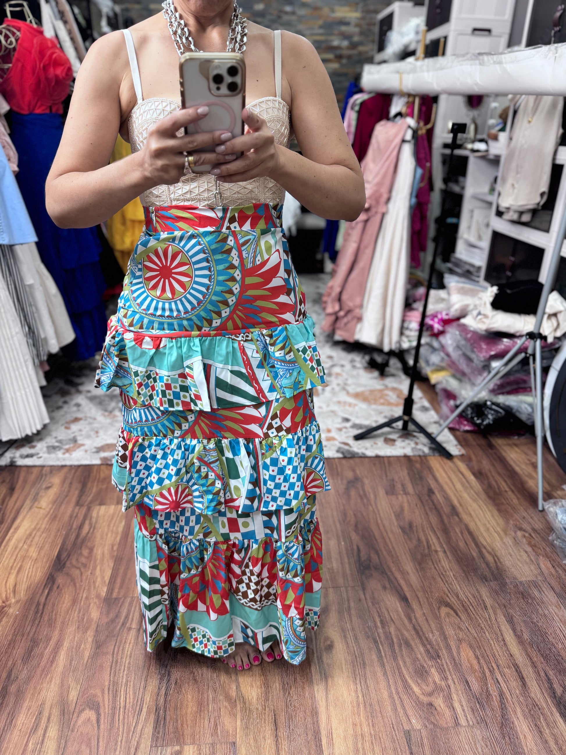 Geo Ruffle long skirt