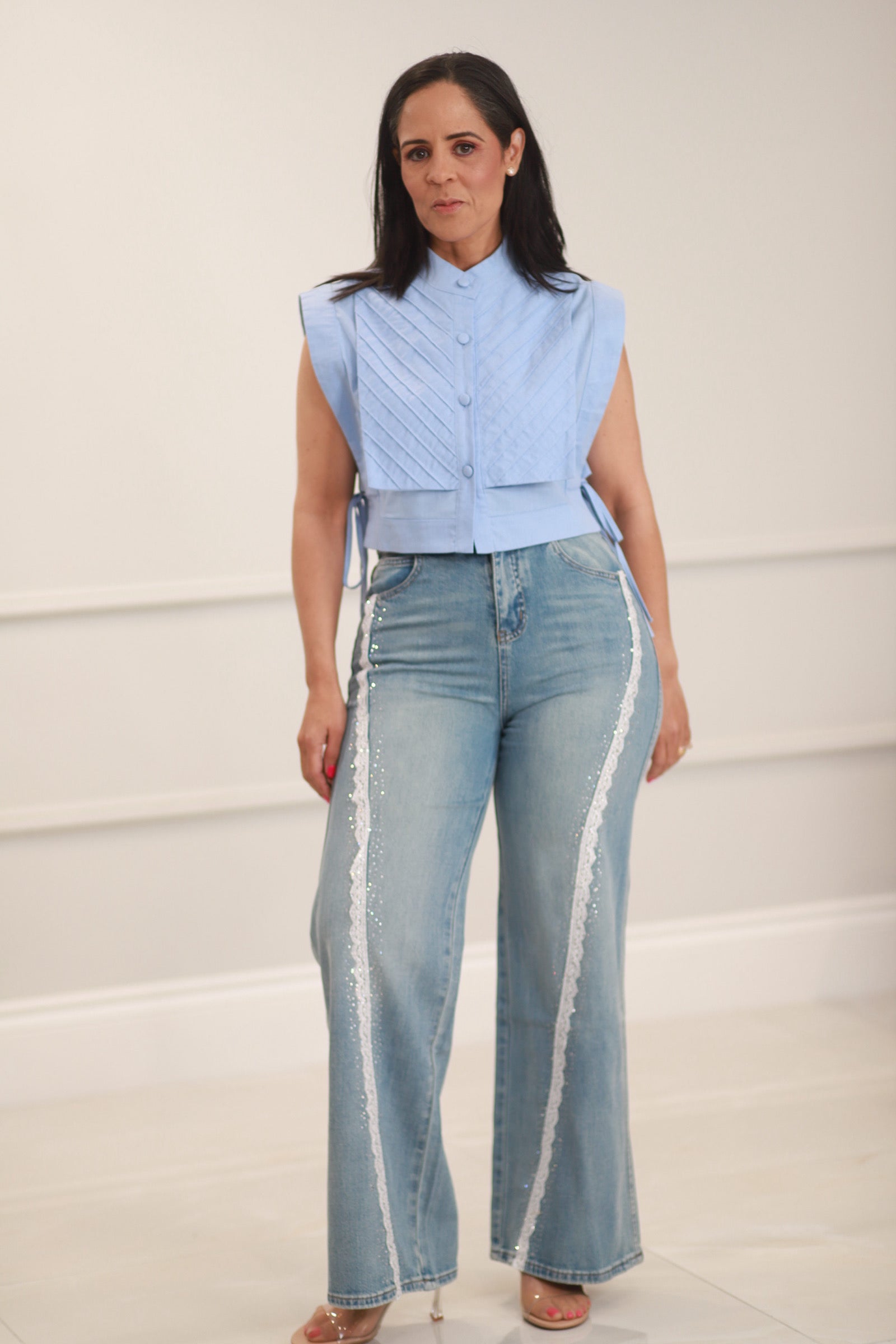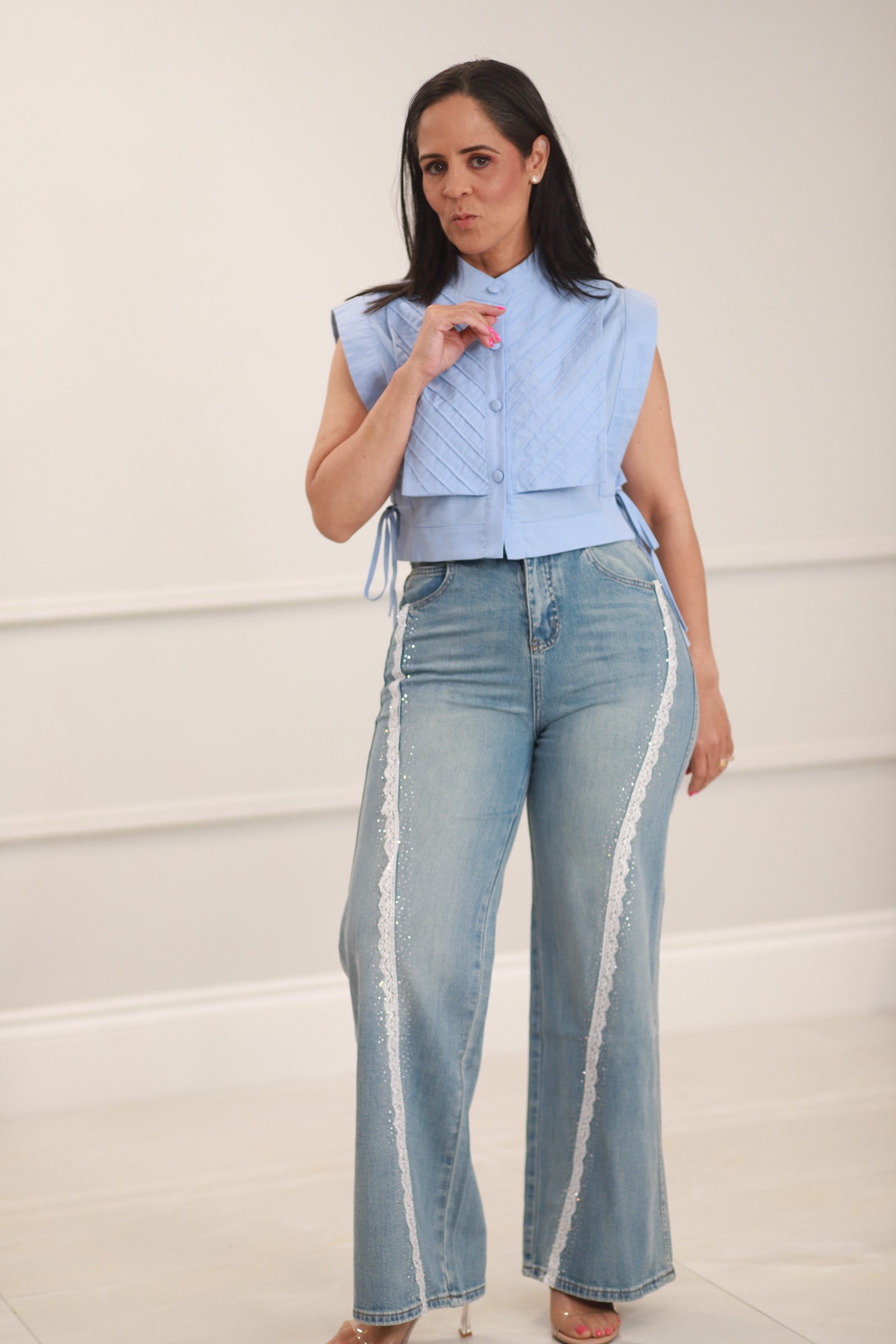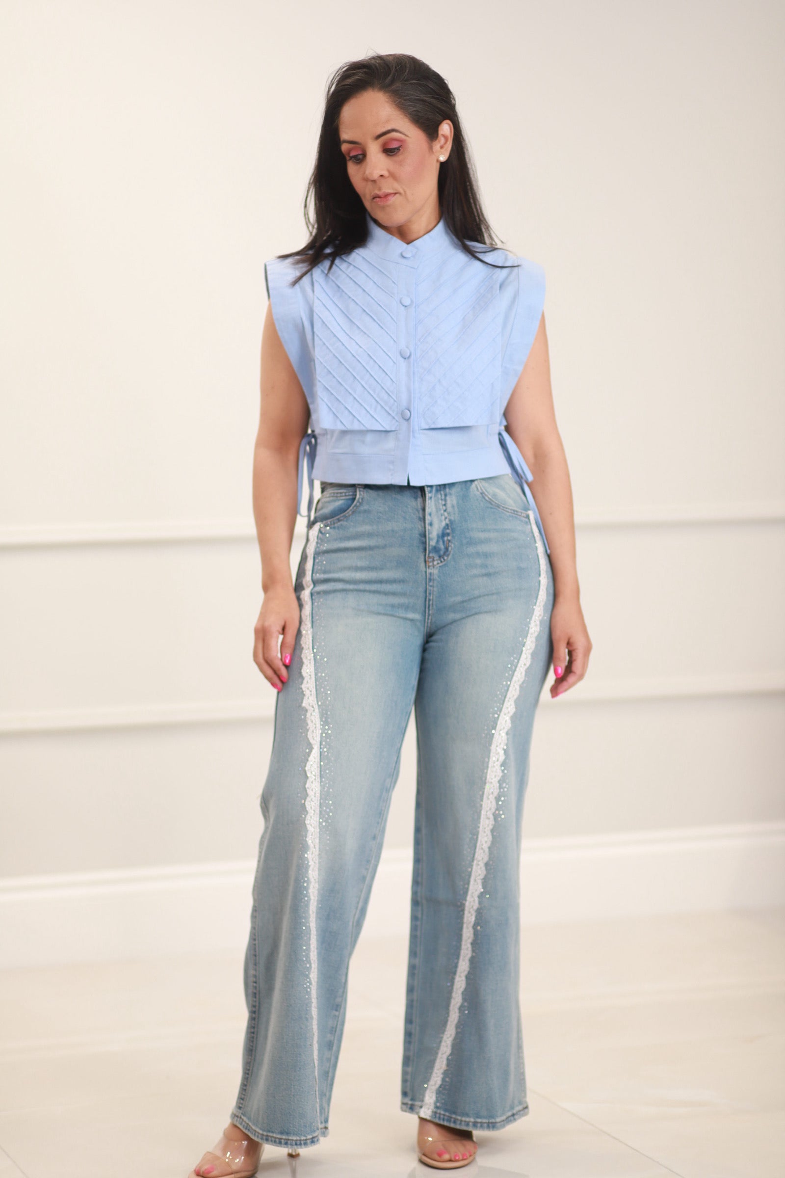 Widel leg with texture detailed Jeans