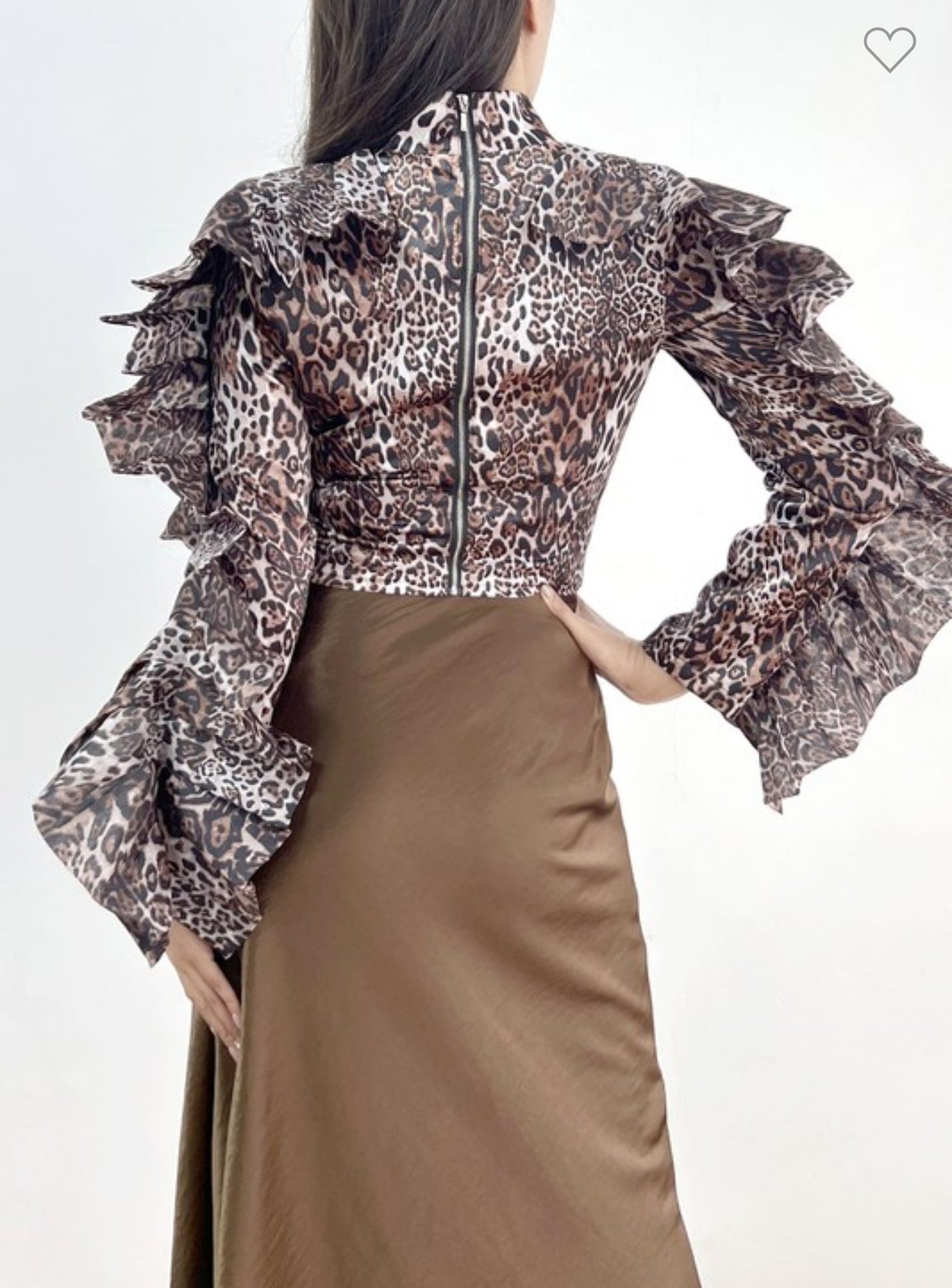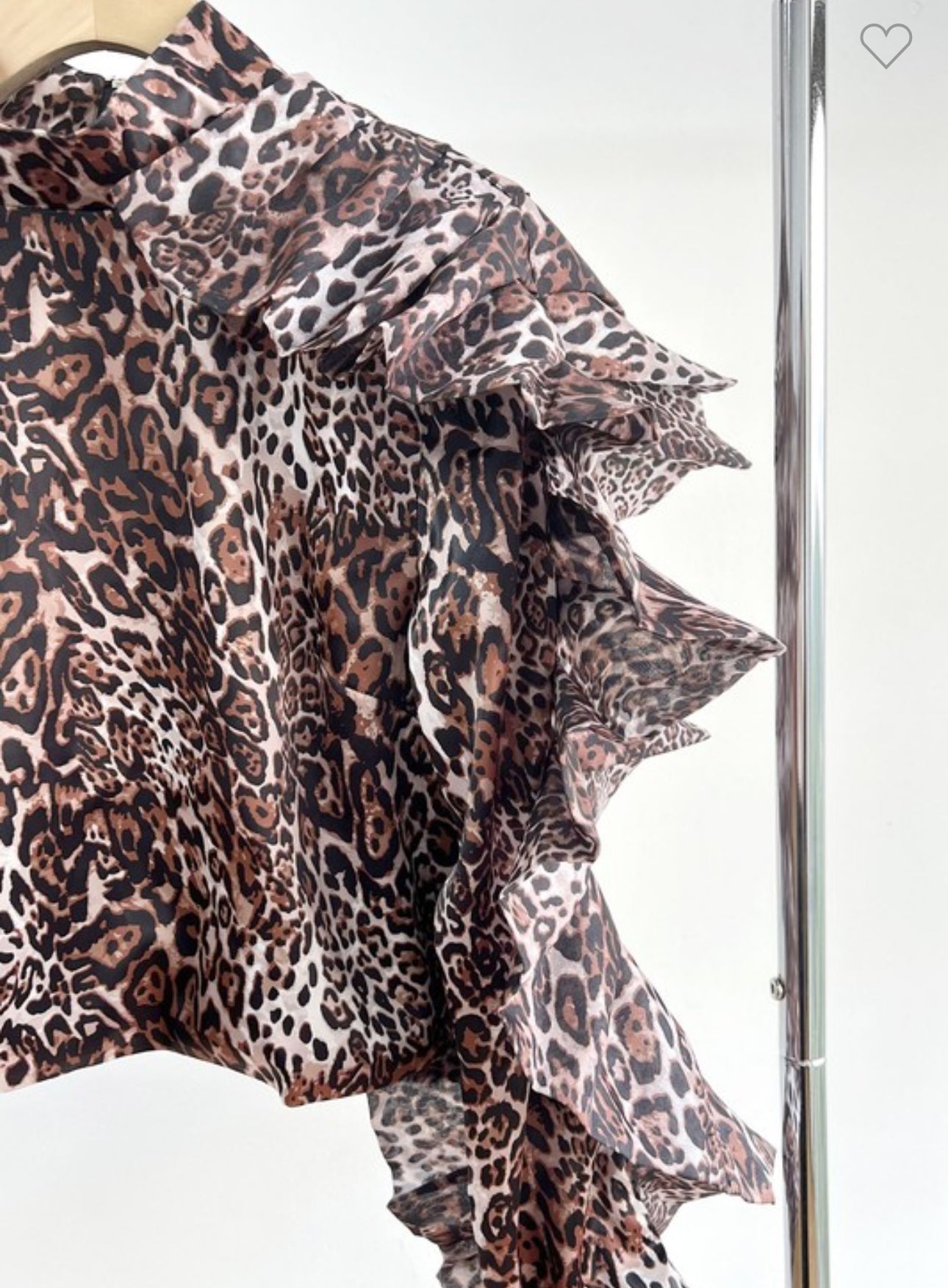 Embrace your fierce style with our Leopard Blouse with Ruffle! Featuring an eye-catching animal print design, this blouse will add a touch of wildness to any outfit. The ruffle detailing adds a touch of elegance, making this a versatile piece for any occasion. Satisfy your inner fashionista and unleash your wild side with this must-have blouse!