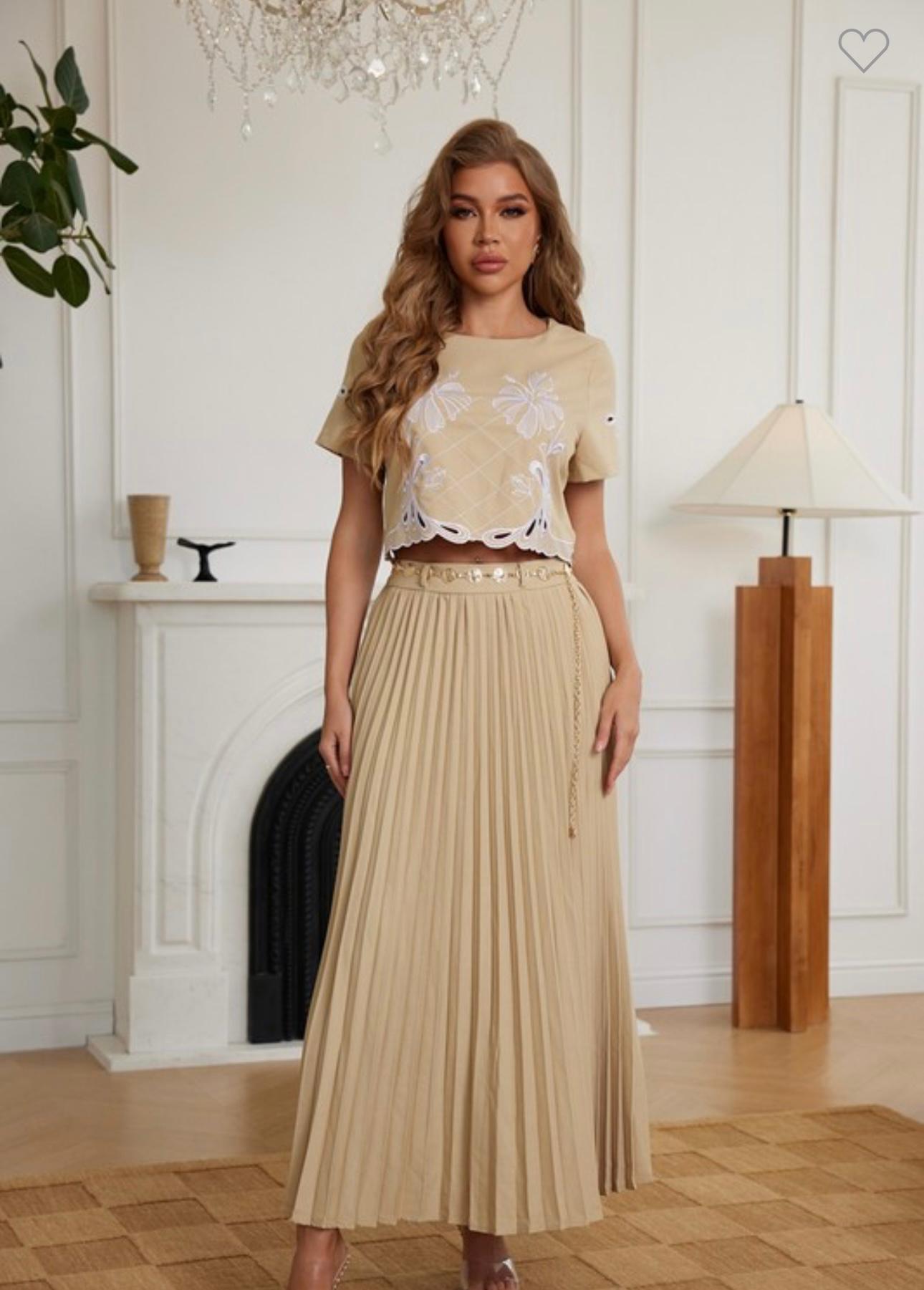 The Litzy Set combines a stylish skirt and elegant blouse for a perfectly coordinated look. This versatile two-piece ensemble transitions effortlessly from office to evening events, saving you the hassle of mixing and matching. With its flattering silhouette and premium fabric, you'll not only look polished but feel confident throughout your day. Don't miss this essential addition to your wardrobe.