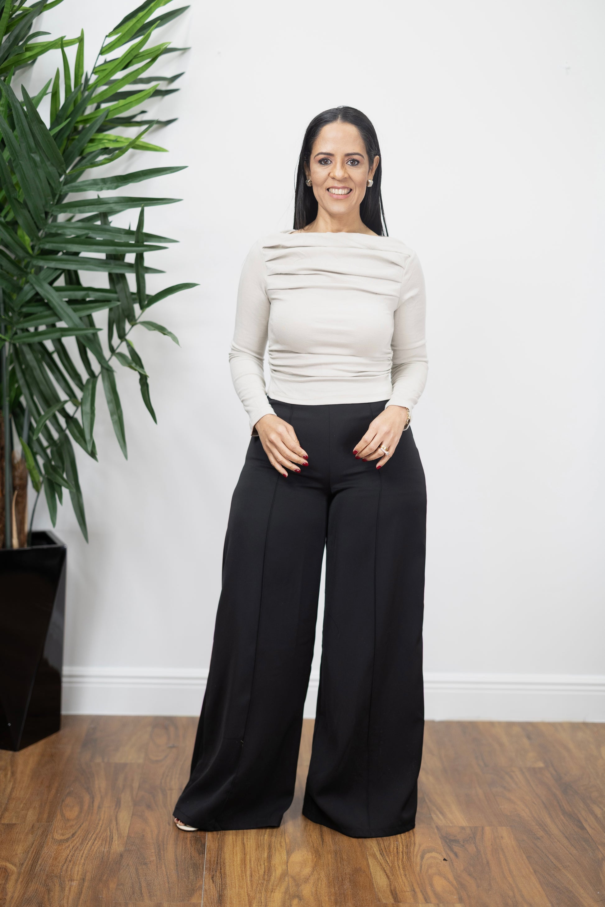 Una pieza esencial con un toque de sofisticación. Este top beige está diseñado con delicados pliegues en la parte frontal y posterior que crean una textura elegante y femenina. Su cuello sutilmente drapeado y corte ajustado estilizan la figura, convirtiéndolo en una prenda ideal para combinar con faldas, pantalones ejecutivos o jeans.