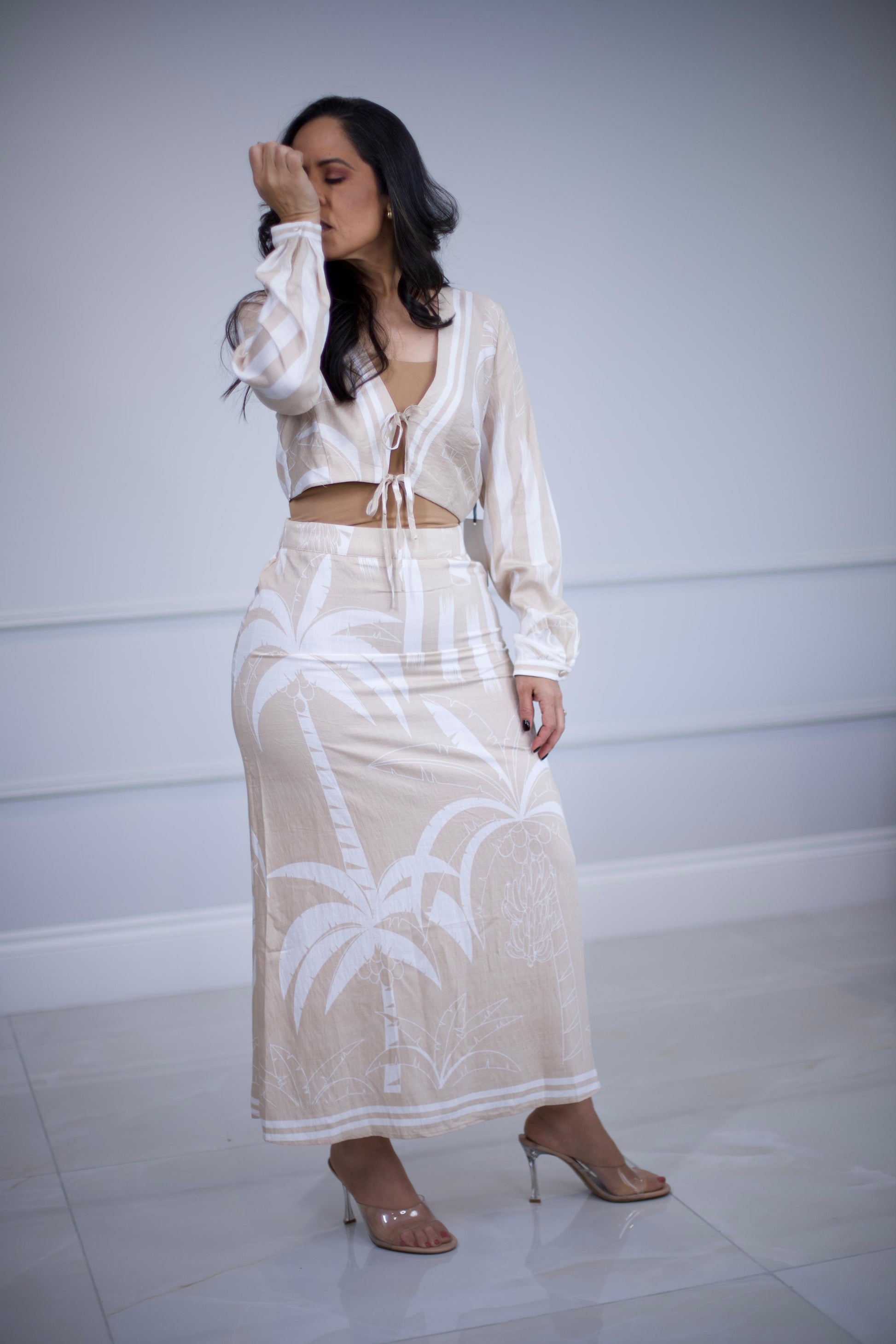 Elevate your wardrobe with the Palmerita Set, featuring a stylish top paired perfectly with a chic skirt. Designed for effortless elegance, this set offers a flattering fit and versatile style that transitions seamlessly from day to night. Embrace comfort without sacrificing fashion and make a statement wherever you go.
