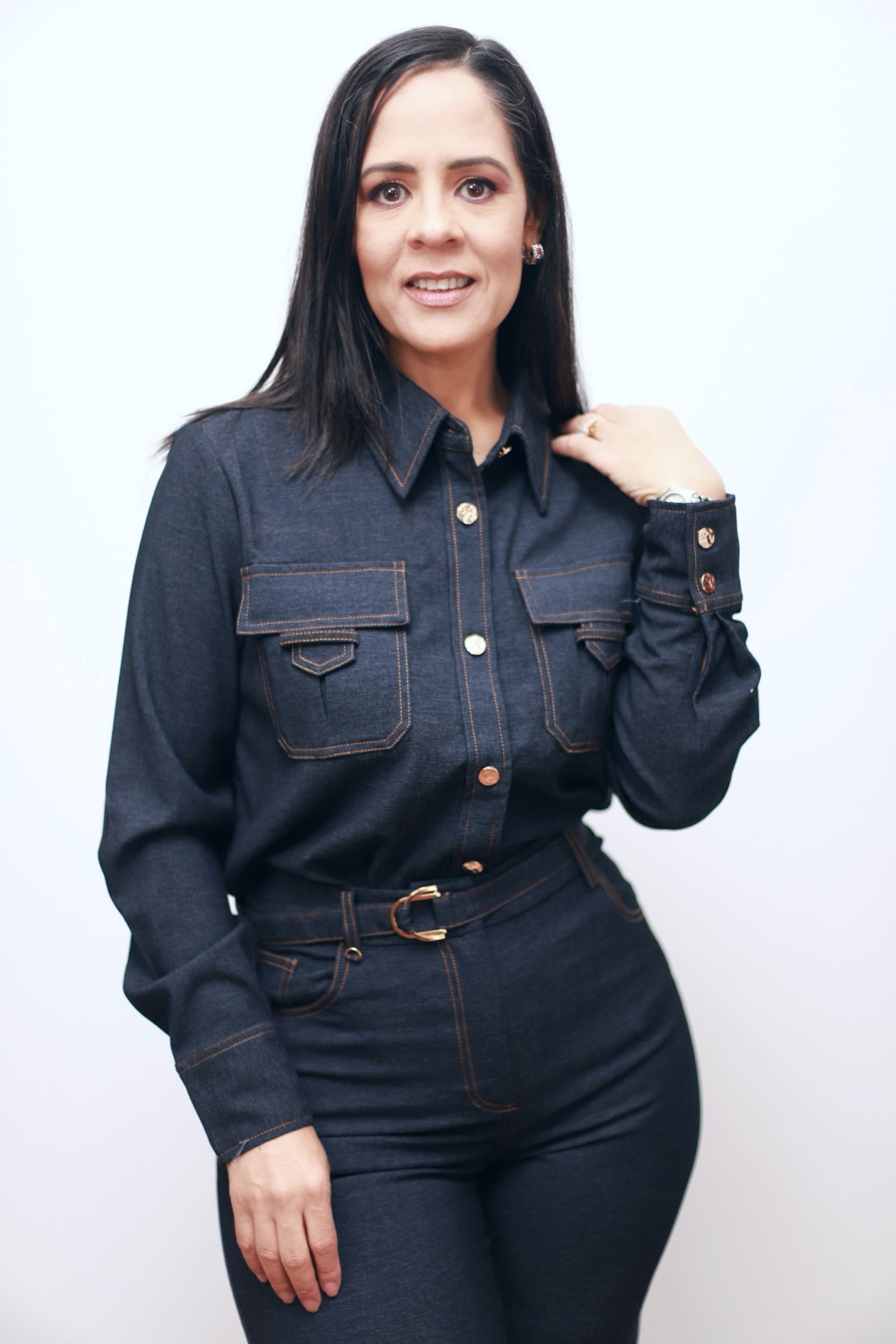 Denim long sleeve shirt and pants Set. Buttons in silver color.